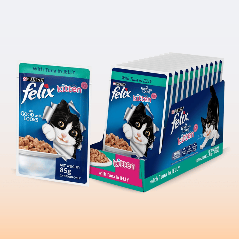 You're viewing: Purina Felix Tuna in Jelly Kitten Wet Food 85 g Price range: ₹720.00 through ₹1,440.00