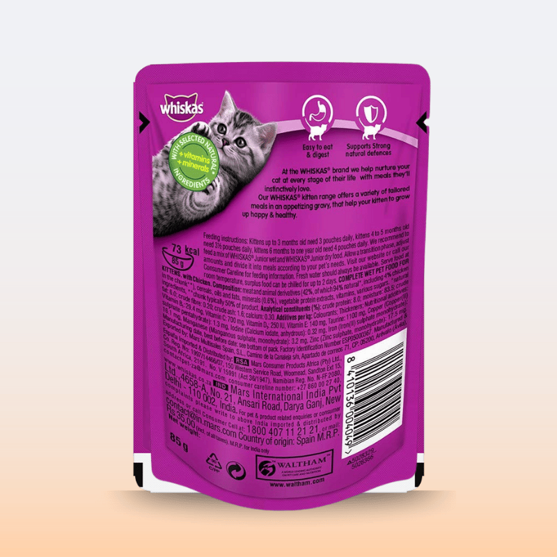 You're viewing: Whiskas Kitten Chicken in Gravy 85 g Price range: ₹700.00 through ₹2,800.00
