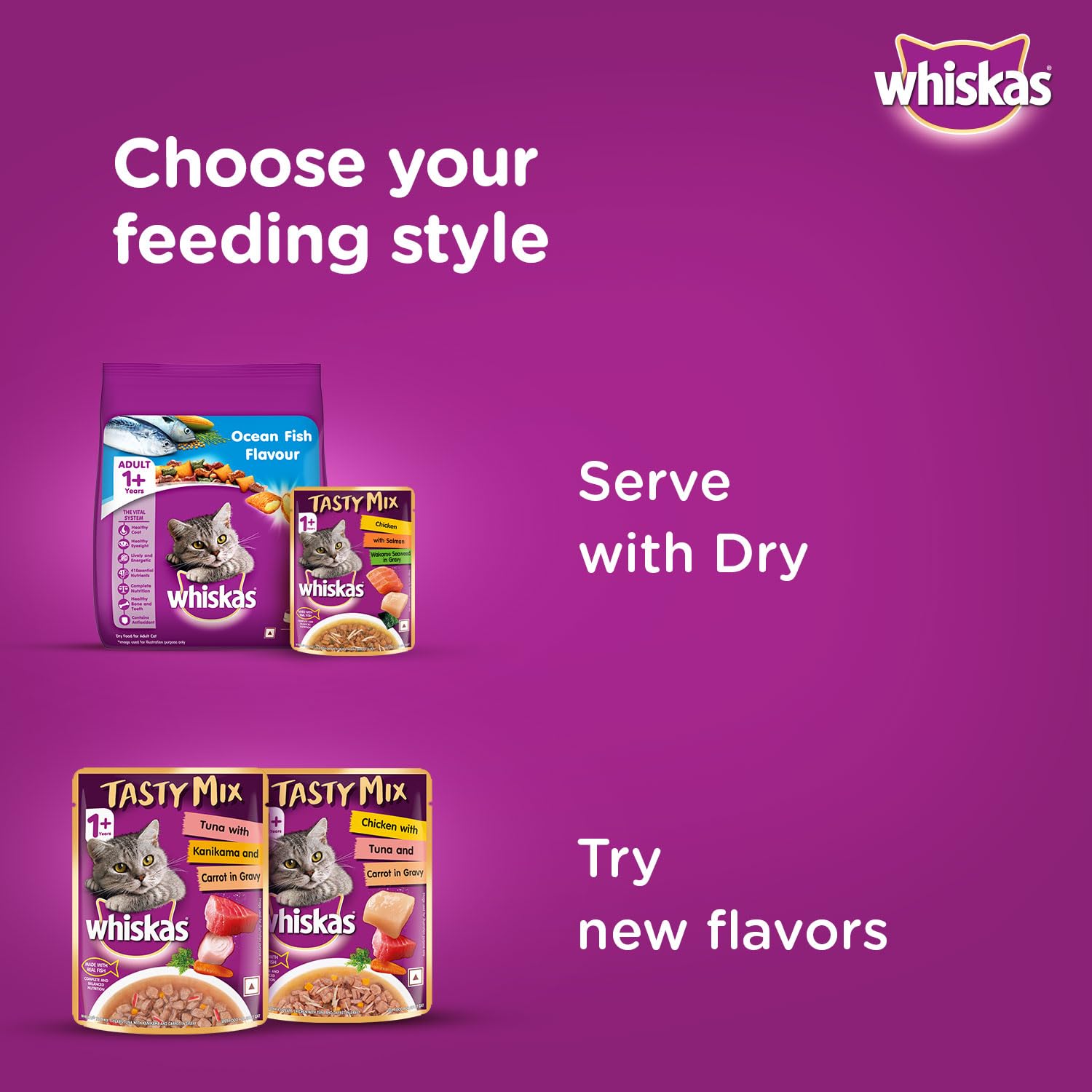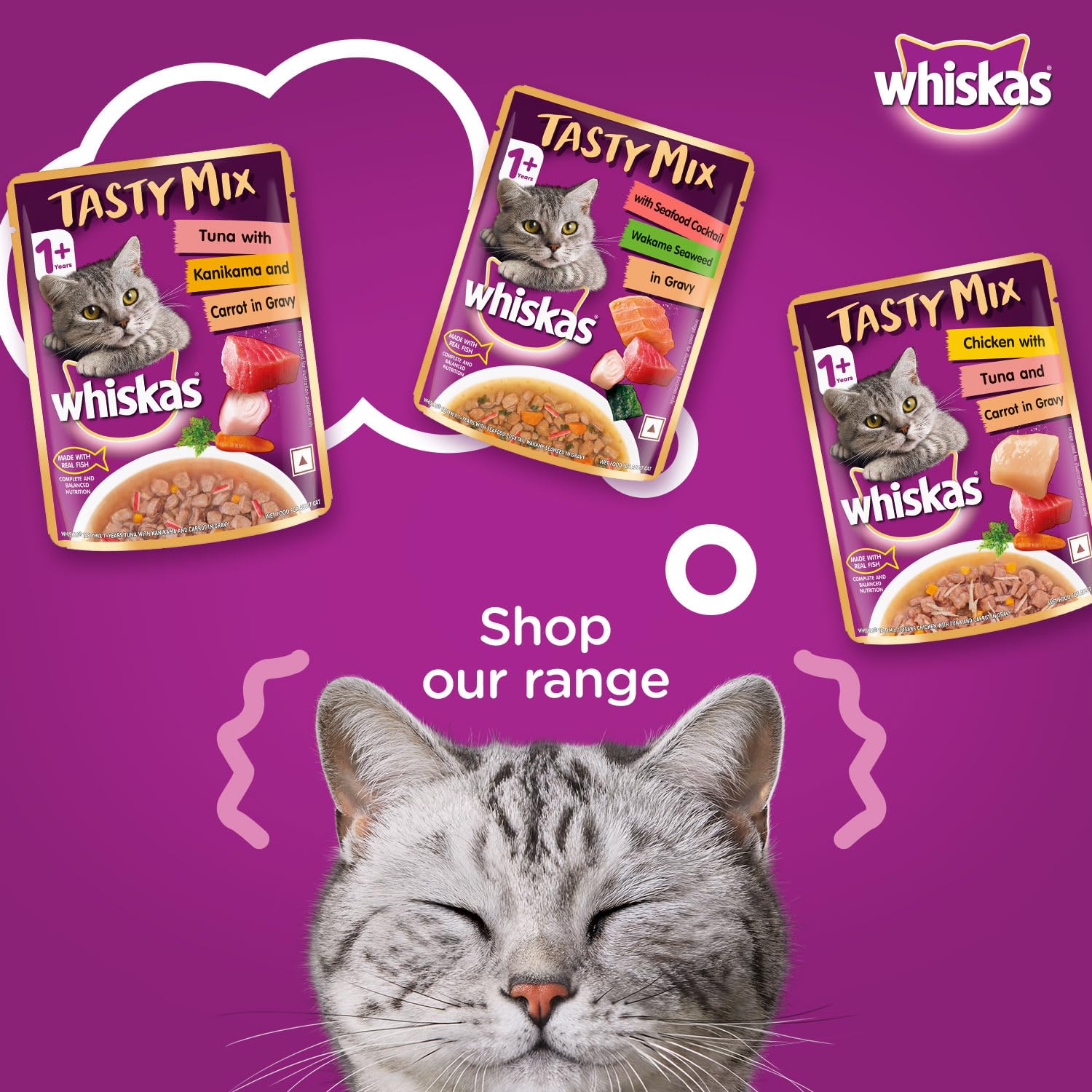 You're viewing: Whiskas Tasty Mix Chicken with Salmon Wakame Seaweed In Gravy Cat Adult Wet Food 70 g Price range: ₹700.00 through ₹2,800.00